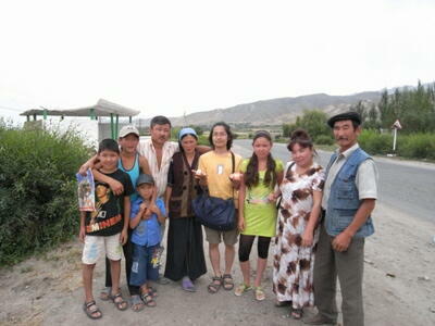 イシククリ一周幹線道路上。リンゴをたくさんもらった。